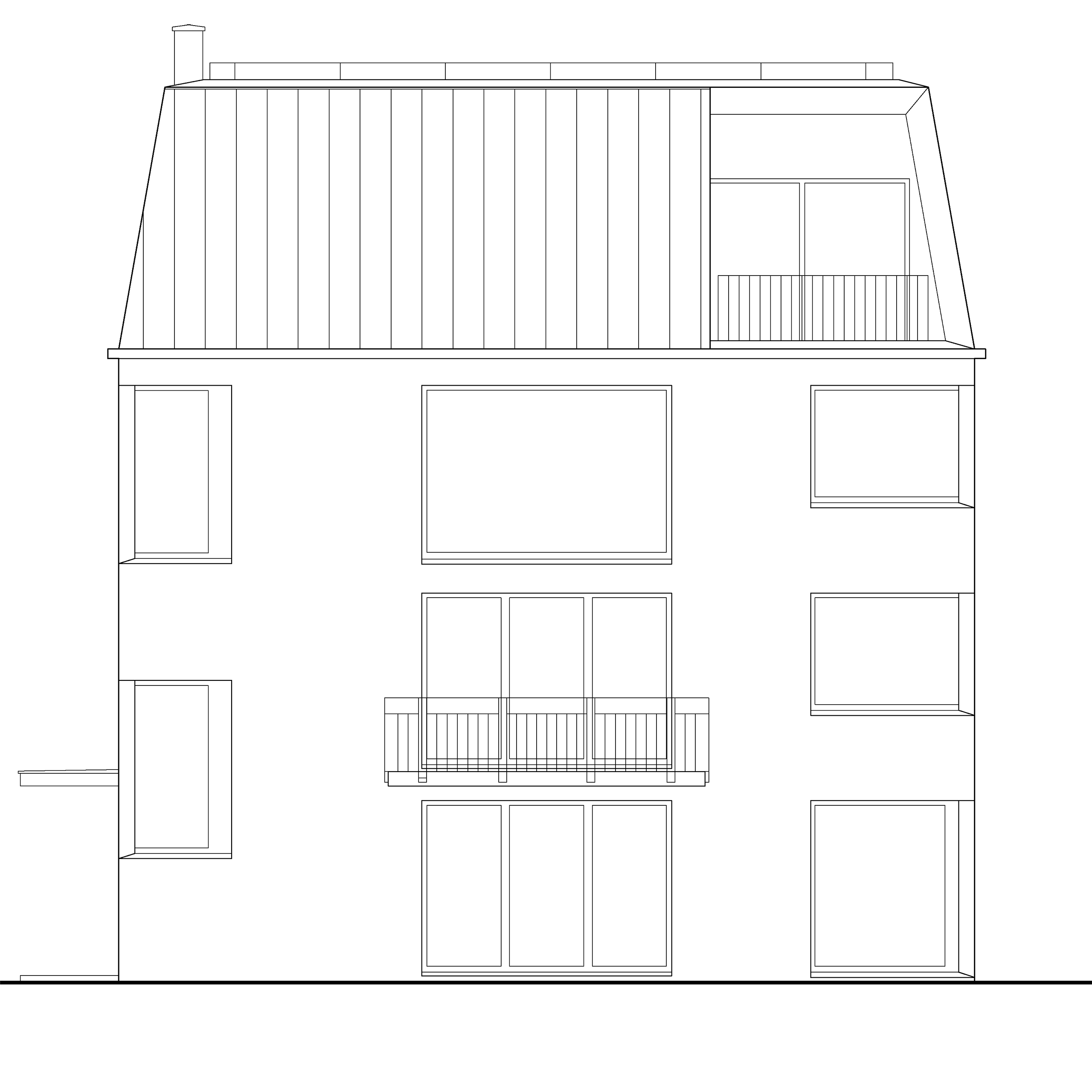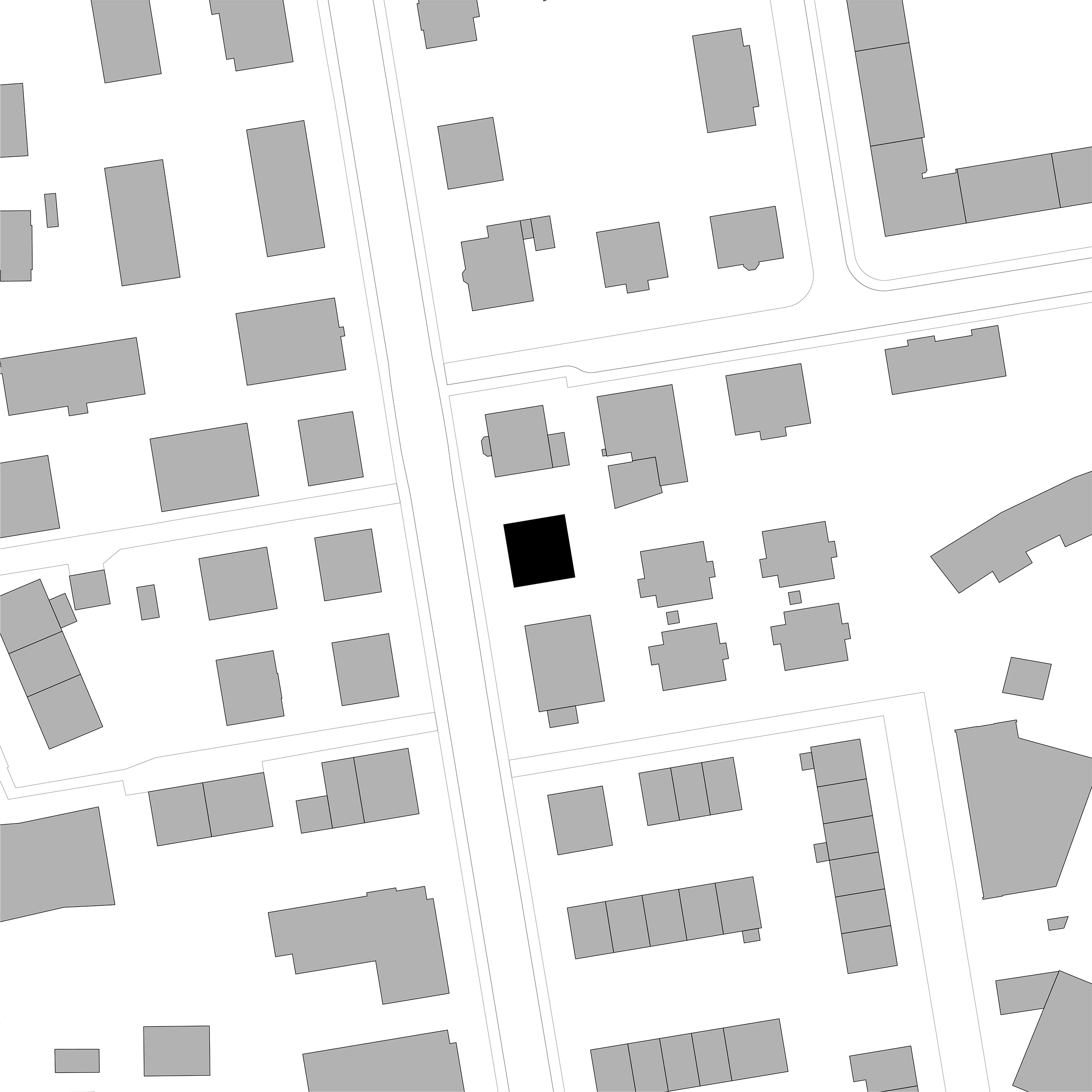 Die Grundtypologie des Gebäudes gleicht den kleinen Stadtvillen im Strassenzug: Ein solid gebauter dreigeschossiger Kubus mit einer Art Walmdach und allseitig befensterten Fassaden.
