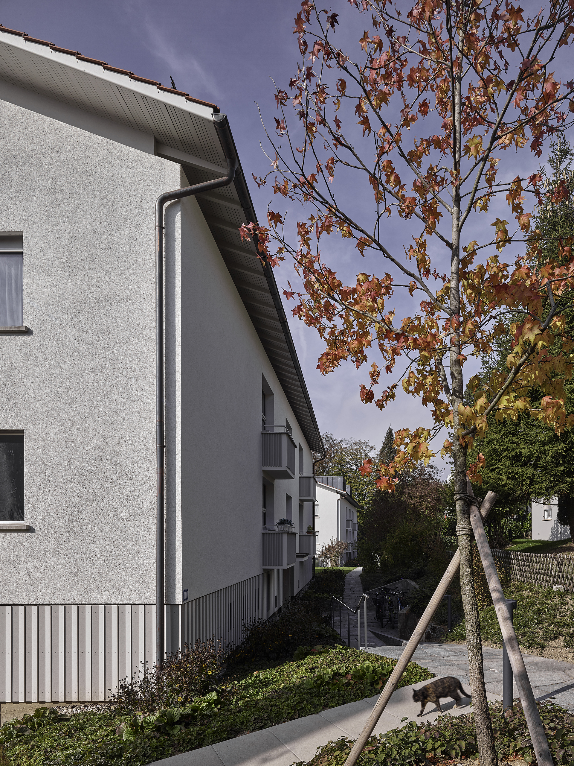 Die Erneuerung der gesamten Haustechnik und eine energetische Verbesserung der Gebäudehülle standen aber dringend an. Mit den vorhandenen Ausnützungsreserven konnte jeweils der Dachstuhl zu einer Wohnung ausgebaut und somit die Investition refinanziert werden.