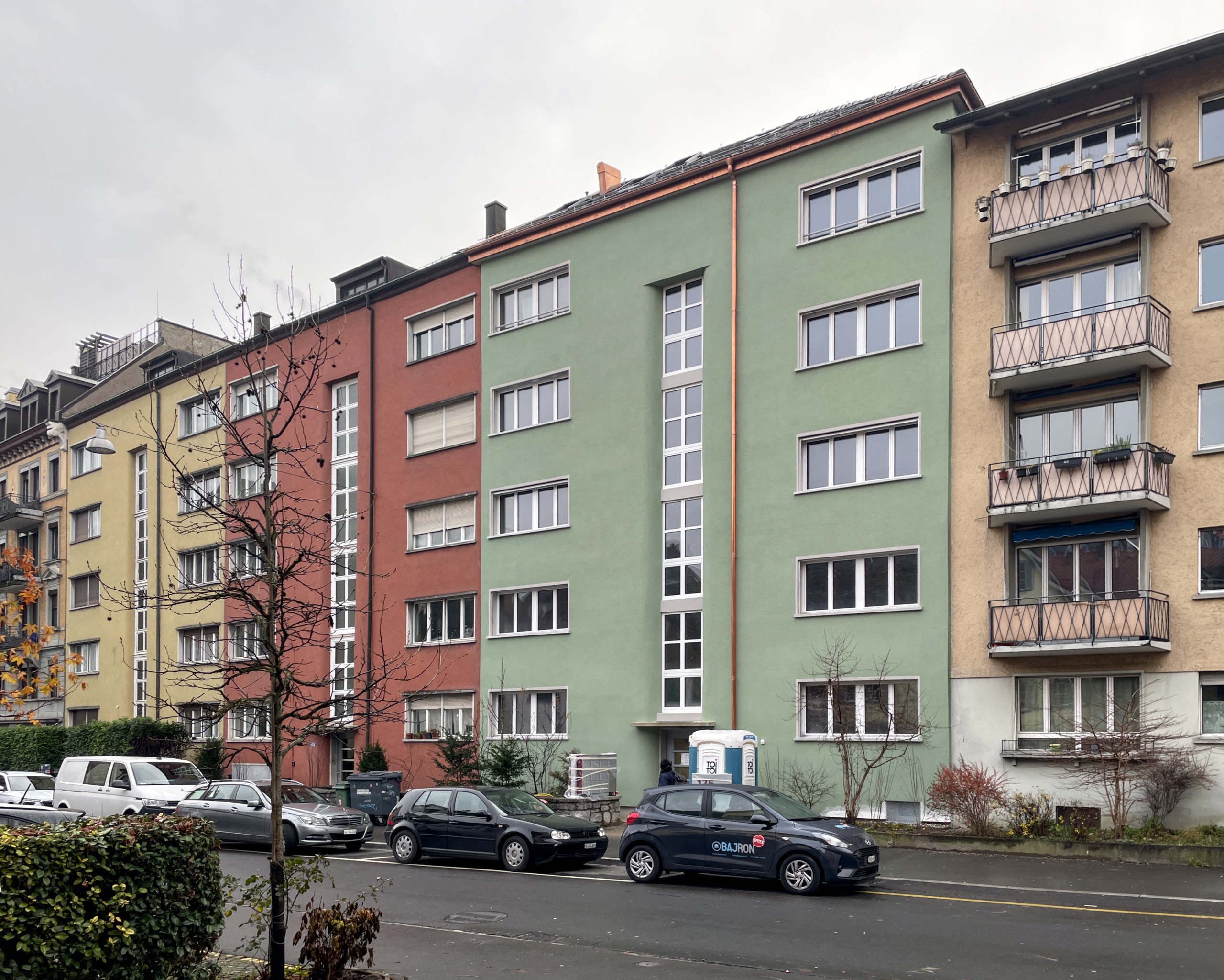 Das Projekt an der Zweierstrasse ist einen Schritt weiter: Die Baueingabe ist eingereicht! Das Haus soll künftig (wieder) in einem typischen Buntton der Bauzeit erscheinen.